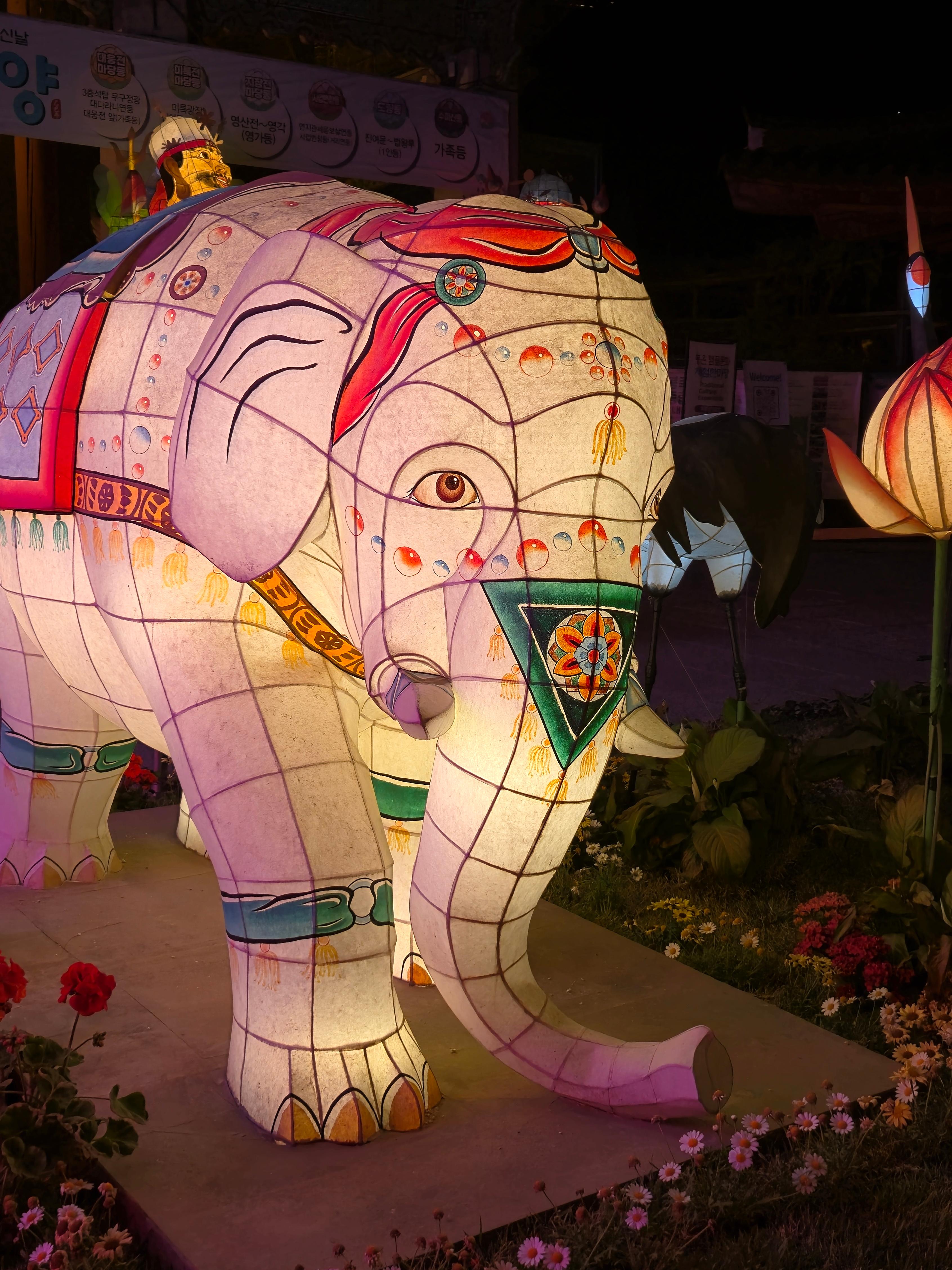 연등을 따라 걸어 대웅전 앞에 도착하니, 그곳에서는 더 크고 정성스러운 등불과 조형물들이 자리하고 있었다.