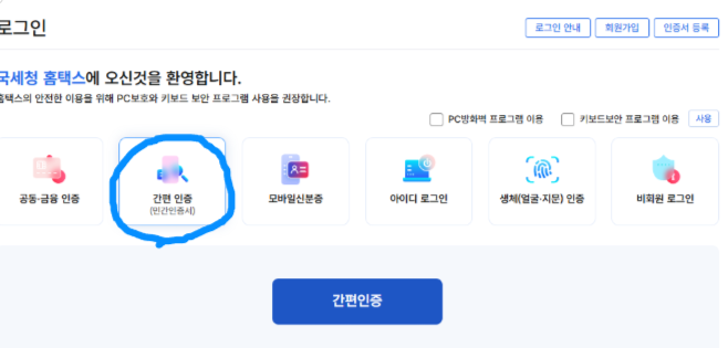 두번째. 간단하게 간편인증 선택 (다른 편한 방식을 선택 해도 됩니다)