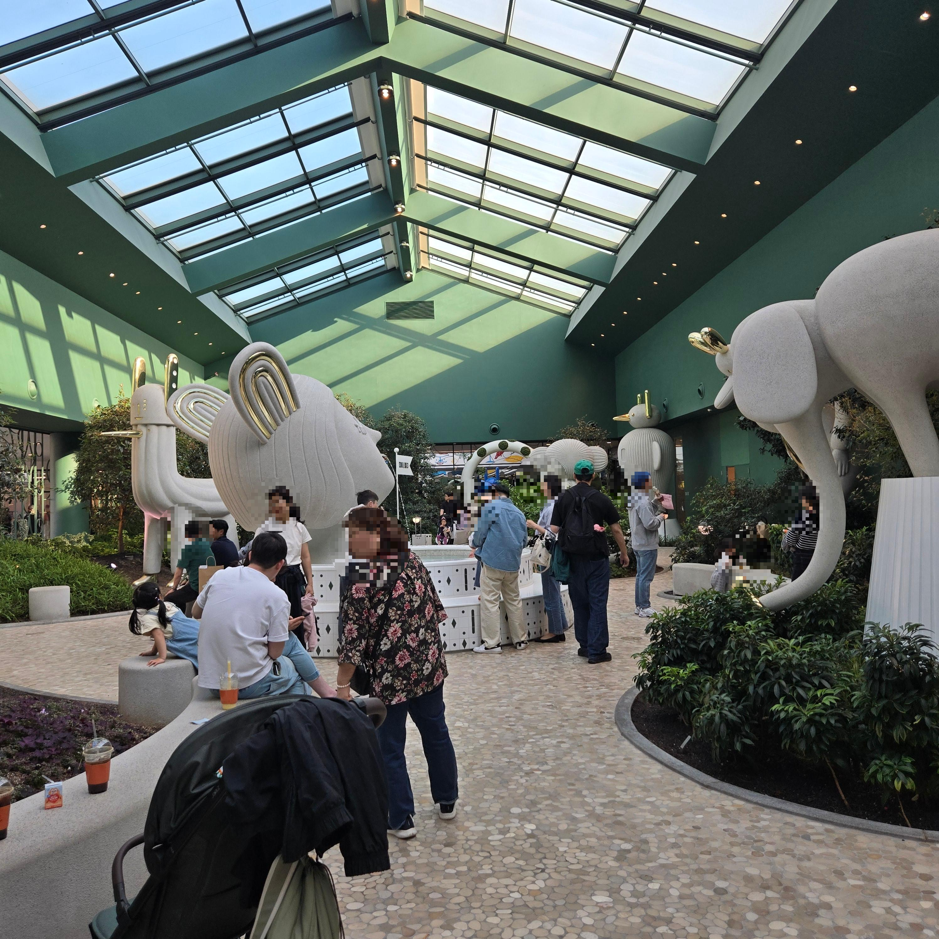 아주 작은 식물원 같은 느낌인데 조각상들이 귀여워요. 사진 찍어도 예쁘게 나오고, 의자에서 쉬었다 가도 힐링될 것 같아요.